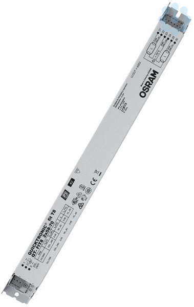EVG für LL 26 mm. Produkteigenschaften: Versorgungsspannung: 220…240 V. Netzspannung: 198…264 V. Netzfrequenz: 50 Hz | 60 Hz. Lampenstart mit optimaler Wendelvorheizung. Energie-Effizienz-Index EEI: A2. Automatische Sicherheitsabschaltung bei Lampendefekt und am Lampenlebensende (EoL T.2). Lampenbetrieb: nach EN 60929. Sicherheit: nach EN 61347-2-3. Produktvorteile: Lange Lampenlebensdauer. Hohe Schaltfestigkeit. Automatische Wiedereinschaltung nach Lampenwechsel. Perfekter Lampenwarmstart für Anwendungen mit Bewegungsmelder. VDE/VDE EMV-zertifiziertes System. Höchste Energieeffizienz durch Cut-off-Technologie. Anwendungsgebiete: Großraumbüros, Korridore oder Lagerräume. Öffentliche Gebäude. Lichtbänder. Geeignet für Notbeleuchtung (DC-Betrieb). Geeignet für Leuchten der Schutzklasse I.