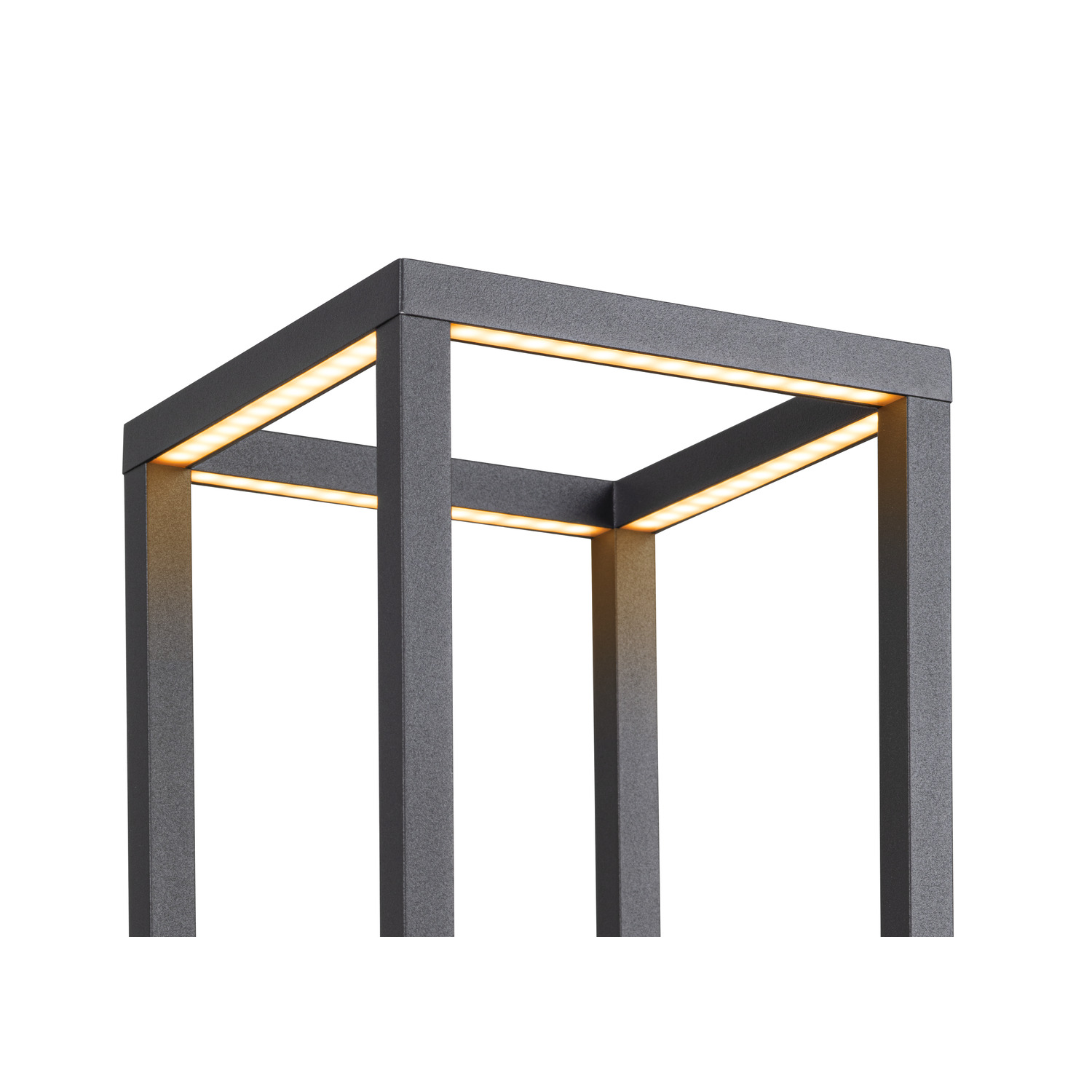 Aus Aluminium gefertigte LED Stehleuchte der QUADRULO Serie mit klarer Leuchtfläche. Durch die hohe IP Schutzart ist die Leuchte ein Blickfang für jeden Außenbereich. Der elektrische Anschluss erfolgt direkt an 230V Netzspannung.