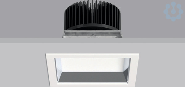 Hochwertiges Einbau-Downlight mit quadratisch leuchtender Fläche. Einbaurahmen aus Aluminium-Druckguss pulverbeschichtet. Haltebügel Stahlblech verzinkt. Reflektor Aluminium hochglanzeloxiert. Zurückgesetzte Abdeckscheibe Polycarbonat satiniert. Deckenbefestigung mit Federsystem. Inklusive Betriebsgerät extern über Steckverbindung, Verbindungsleitung 600 mm. Durchgangsverdrahtungsbox (5-polig) als Zubehör erhältlich.