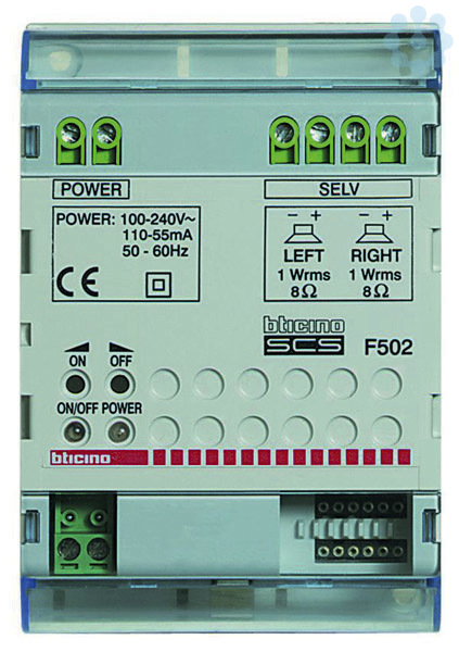 Stereo-Reiheneinbauverstärker, Leistung 16?W pmpo an 8 Ohm, Stromversorgung 230?V a.c., 4 TE DIN