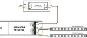 Funksystem-Controller für 1-5 Kanal-Betrieb (RGB+TW). Funksystem-Controller zur Ansteuerung von 1-5-Kanal-LED-Modulen (RGB+TW). Ansteuerungsvariante: RGB + TunableWhite Funk-Master-Controller 18190000: Spannung: 12-24 V DC, Strom: max. 5 x 2,0 A, 4 x 2,5 A, 3 x 3,33 A, 2 x 5,0 A, 1 x 5,0 A, Leistung: max. 120 W / 240 W (12 V DC / 24 V DC), Ansteuerung: negativ (gemeinsame Anode), Steuersignal: PWM, Funkfrequenz: 869,5 MHz, Reichweite (Sichtverbindung): bis zu 20 m, Umgebungstemperatur (ta): 0 °C bis + 40 °C, Maße: L 170 x B 59 x H 29 mm, Material: Kunststoff, Lieferung: inkl. Zugentlastung, Controller pro Fernbedienung: max. 4 (bei optimaler Funkverbindung) Kompatibel zu: Funk-Fernbedienung RGB+TW: 18205000 Weitere Funktionen zu den oben genannten Komponenten entnehmen Sie bitte der jeweiligen Produktbeschreibung. . Schutzart raumseitig: nach DIN EN 60529: IP20, Schutzklasse: (EN 61140) III, Leistung: 240W, Art der Dimmung: Funksteuerung.