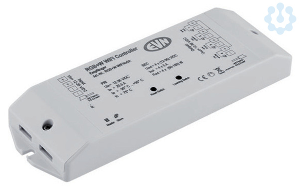 WIFI-RGB-Controller für RGB- und RGBW-LED-Leuchten. Einfache Steuerung der RGB-Leuchten über Smartphone oder Tablet, sowohl über Android, als auch über IOS-Geräte. Geeignet für Leuchten mit einer Betriebsspannung von 12, 24 und 36V/DC. Die tatsächlich zu verwendende Eingangsspannung ist abhängig von der benötigten Spannung der angeschlossenen Leuchten. 1x Eingang, so wie 1x Ausgang für 12-36V/DC und 4x Ausgang (RGBW). Die Schraubklemmen sind für Kabel von 0,5mm² - 2,5mm² geeignet. Technische Daten: ta: -20°C - 50°C, tc: 75°C, max. Ausgangsleistung je Kanal: 5A (60W bei 12V/DC, 120W bei 24V/DC und 180W bei 36V/DC). Optional kann die Ansteuerung auch über Funk-Sender mit 868MHz oder 2,4GHz erfolgen.