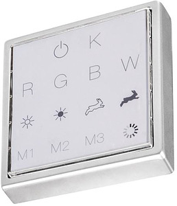 vitaLED® Sensor-Touch-Modul, weiß. In Verbindung mit dem vitaLED®-Steuergerät 18300000 und dem Busankoppler 18310000 können mit diesem Sensor-Touch-Modul folgende Funktionen abgerufen werden: • Unabhängige Helligkeitssteuerung aller vier Farben (RGBW) • Speichern von 3 individuellen Farbwerten • Abrufen von voreingestellten Farbtemperaturen (2.000 K - 10.000 K) • Abrufen von 11 Farbverläufen / Farbpartituden • Stufenlose Geschwindigkeitsregelung der 11 Farbverläufe / Farbpartituden Sechs Farbverläufe: 1. RGB (sanft) rot, grün, blau, türkis, violett, gelb, weiß 2. RGB (sanft) blau, türkis, violett, rot, pink, gelb, grün, weiß, weiß-blau 3. RGB (abrupt) grün, rot, blau, violett, pink, orange, gelb, weiß 4. RGBW (sanft) rot, rot-weiß, weiß-gelb, gelb, grün, grün-weiß, weiß-blau, türkis, blau, violett, violett-weiß, weiß 5. RGBW (sanft) kaltweiß, weiß, warmweiß, gelb, orange, rot, violett, türkis, weiß-blau, blau, weiß 6. RGBW (abrupt) grün, rot, blau, weiß, türkis, violett, violett-weiß, pink, pink-weiß, gelb, gelb-weiß, weiß, weiß-grün Fünf Farbpartituden 1. Farbfrische | 2. Abendrot | 3. Indian Summer | 4. Frühlingserwachen | 5. Biorhythmus Material: Kunststoff / Stahl, Umgebungstemperatur (ta): 0 °C bis +45 °C, geeignet zum Einbau in Hohlwand- und Unterputzdosen (Ø 68 mm), Maße: L 81 x B 81 x T 25 mm Zusätzlich benötigt: 2-adrige Leitung (z.B. J-Y(St)Y) maximal 30 m als Verbindung zum Busankoppler 18310000. Schutzart raumseitig: nach DIN EN 60529: IP20.