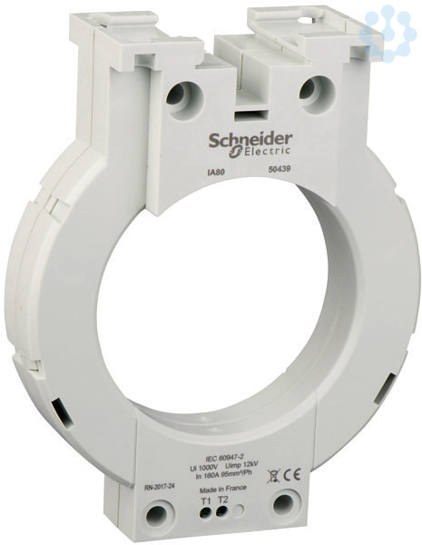 Dieser Ringkern ist für die Vigilohm Isolationsfehlersuchgeräte und die VigiPacT-Fehlerstromschutz- und Überwachungsrelais vom Typ A bestimmt. Es ermöglicht die Überwachung der eingespeisten Komponente von Vigilohm Insulation Monitor und die Messung eines Nennstroms bis 160A für VigiPacT Überwachungs- und Schutzrelais. Das Übertragungsverhältnis beträgt 1/1000. Der Innendurchmesser des Toroids beträgt 80 Millimeter und das Gewicht 0,420 kg. Die Kabel müssen innerhalb des Toroids zentriert sein, und der Durchmesser aller dieser Kabel darf 40 mm nicht überschreiten. Der maximale Querschnitt pro Phase (R, S, T, N) beträgt 95mm² für einen Kupferleiter.
