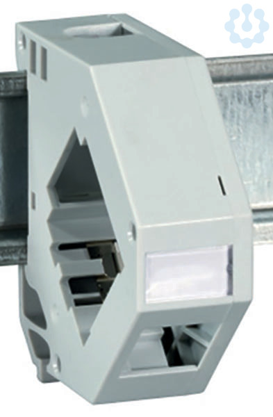 RJ45 Keystonehalter 1-fach RAL7035 Hutschiene schräg Erdungsfeder