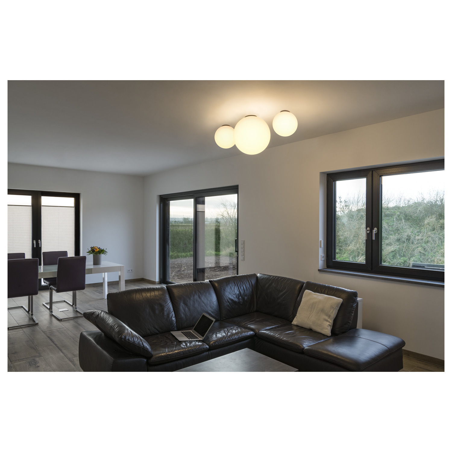 Die kugelförmige Hochvolt Deckenleuchte ROTOBALL 40 besteht aus einem Leuchtenschirm aus temperaturbeständigem Kunststoff, der optisch mit einer Halterung aus silbergrauem Stahl abgerundet wird. Der voluminöse Leuchtenschirm sorgt für homogene Ausleuchtungseigenschaften des zum Einsatz gebrachten Energiespar- oder LED-Leuchtmittels mit handelsüblicher E27 Fassung. Eine passende Deckenrosette ist bereits im Lieferumfang enthalten. Die ROTOBALL 40 Deckenleuchte ist somit fertig für den direkten Anschluss an 230V Netzspannung.