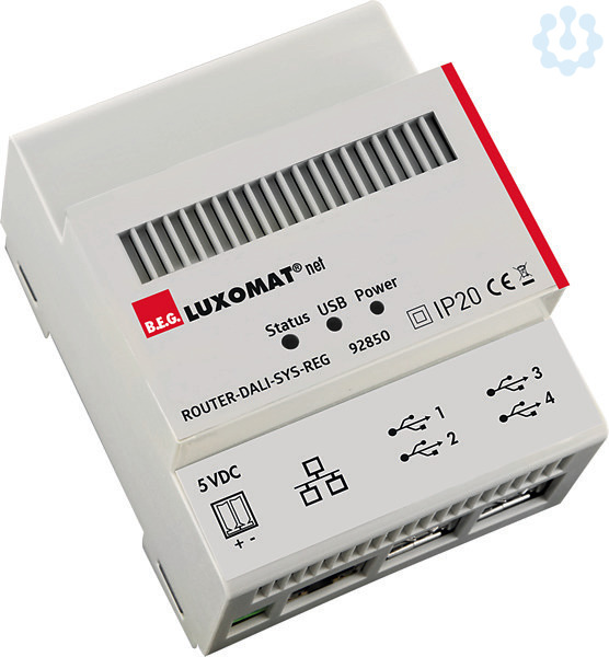 DALI-Router mit integriertem Web-Server für die Hutschienenmontage, 1 bis 4 DALI-Linien (über USB und B.E.G. LUXOMAT(R)net PS-DALI-SYS-USB-REG), Bis zu 100 DALI-Router pro LAN --> Bis zu 400 miteinander vernetzte DALI-Linien, Zentrale Verwaltung von Parameter, Adressen, Gruppen und Szenen aller vernetzten DALI-Teilnehmer, Biologisch wirksame Lichtsteuerung HCL (Human Centric Lighting) in Kombination mit DALI-SYS Multisensoren und kompatiblen Leuchten (NTP-Service über LAN oder WAN erforderlich), Erweiterte Begleitlichtfunktion GUIDED LIGHT PLUS (DALI-Linien-übergreifend), Ereignis-Routingfunktion, um DALI-Linienübergreifende Beleuchtungszonen realisieren zu können, DALI-Notleuchten Manager, Update-Manager, für Aktualisierung der Router-Firmware über LAN/WAN, Bedienbar über kompatible Web-Browser beliebiger Endgeräte (Smartphone, Tablet, PC), Analyse- und Diagnosetools für Fehlersuche, Inklusive separat beigelegter 5VDC/2A-Spannungsversorgung für Hutschienenmontage (1TE)