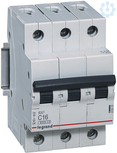 Legrand Leitungsschutzschalter RX3 nach EN 60898-1, VDE 0641-11, EN 60947-2, 3-polig, C-Charakteristik, Bemessungsstrom In 16 A, Bemessungsschaltvermögen Icn 6 kA nach EN 60898-1, Bemessungsspannung Un 400 VAC, Bemessungsfrequenz 50/60 Hz, Energiebegrenzungsklasse 3, Befestigung auf Hutprofilschiene EN 60715 durch eine rastende Schnellbefestigung, klare Information vorne auf jedem Gerät, Kennzeichnung Schaltstellungsanzeige On/Off, mit Beschriftungsfeld, Anbau von Hilfsgeräten nicht möglich. Leitungsschutzschalter mit C-Charakteristik sind für den Leitungsschutz bei Geräten mit hohen Einschaltströmen (z.B. Motoren und Transformatoren) vorgesehen.
