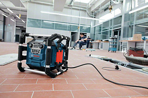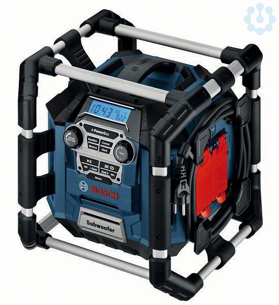 Radio GML 20. Baustellenradio neu definiert: 360 Grad Schutz, 360 Grad Sound. Extrem robust durch Rundum-Schutz: Voll funktionsfähig auch nach einem 9 m Fall durch federnd gelagerten Aluminiumrahmen sowie Staub- und Spritzwasser geschützt. Unschlagbarer Rundum-Sound für Radio und MP3-Wiedergabe durch starke 20 Watt. Integriertem Subwoofer und 4 Boxen. Variable Anschlussmöglichkeiten (USB, SD, 2x Aux In, Aux Out) für Musikwiedergabe sowie 12 V DC Strombuchse. Zwei integrierte 230-Volt-Standardsteckdosen zum Anschluss weiterer Netzgeräte. Beleuchtetes Display. Akku und Ladegerät nicht im Lieferumfang enthalten. Aux-In Kabel, Karton, 2 x 1,5 V LR6-Batterie (AA).