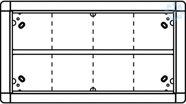 Rahmen bestückbar mit 8 Portier Funktionsmodulen. Abmessungen UP-Gehäuse 409x215x50mm (BxHxT). Abmessungen UP-Rahmen 431x239x7mm (BxHxT). Farbe weiß.