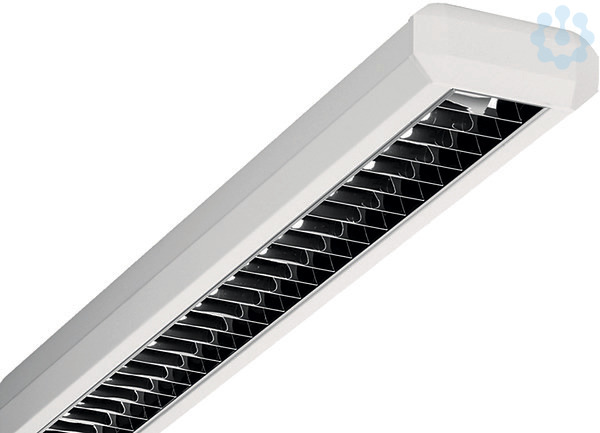 Raster-Anbauleuchte, elektronisches Vorschaltgerät EVG, für Leuchtstofflampe 2xT26 58W. Geeignet für Bildschirm-Arbeitsplätze. Oktagonförmiger Leuchtenkörper aus Stahlblech weiß, mit Stirnteile aus Kunststoff weiß, abnehmbar für Bandmontage. Doppel-Parabol-Raster (DPB) aus hochglänzendem Aluminium, BAP 60°. Beleuchtungseigenschaften: Geeignet für Arbeitsplätze mit Bildschirmunterstützung. Zwei Einführungen mit Würgestopfen für Netzzuleitung an der Unterseite der Leuchte. 3-polige Anschlussklemme. Geeignet für Deckenmontage und Seilabhängung (siehe Montageanleitung). Schutzart IP20, Schutzklasse I.