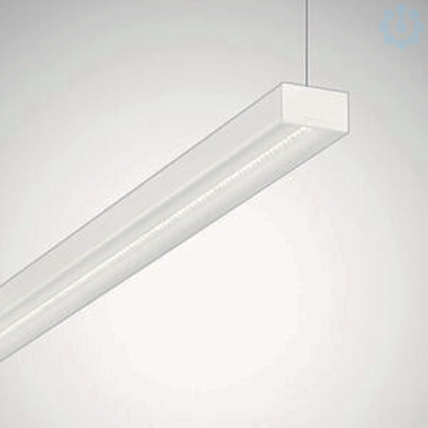 LED-Hängeleuchte für Einzel- oder Lichtbandanwendungen. Für abgehängte Montage. Als Einzelleuchte oder in Lichtbandanwendung. Optisches System in Micro-Reflektor-Technology (MRW) mit hocheffizienten Reflektorkammern aus weiß-poliertem Kunststoff für hohen Lichtkomfort und Effizienz. Mit zusätzlicher, im optischen System integrierten, klaren Abdeckscheibe für raumseitig flächenbündigen Abschluß und Schutz der LED. Dezente seitliche Lichtauskopplung über die gesamte Leuchtenlänge. Mit direkt-indirekt strahlender Lichtstärkeverteilung. Blendungsbewertung nach UGR-Einstufung (EN 12464-1) < 19. Mit innovativem, lichttechnisch wirksamen PMMA-Lichtkuppeln für die Lichtauskopplung des Indirektanteils. LED-System und Leuchtenoptik als Baugruppe werkzeuglos in Leuchtenkörper einzurasten. Baugruppe mit Stahlseil vor Absturz bei Montage gesichert. Bemessungslichtstrom 6000 lm, Bemessungsleistung 44,00 W, Leuchten-Lichtausbeute 136 lm/W. Lichtfarbe warmweiß, ähnlichste Farbtemperatur (CCT) 3000 K, allgemeiner Farbwiedergabeindex (CRI) Ra > 80. Mittlere Bemessungslebensdauer L80(tq 25 °C) = 50.000 h. Die Lichtquelle ist entsprechend der Ökodesign-Anforderungen (VO (EU) 2019/2020) austauschbar. Leuchtenkörper aus Stahlblech. Oberfläche weiß beschichtet (RAL 9016). Maße (L x B): 1413 mm x 84 mm, Leuchtenhöhe 45 mm. Zulässige Umgebungstemperatur (ta): -20 °C - +25 °C. Schutzklasse (EN 61140): I, Schutzart (DIN EN 60529): IP20, Stoßfestigkeitsgrad nach IEC 62262: IK03, Prüftemperatur Glühdrahttest gemäß IEC 60695-2-11: 650 °C. Gewicht: 4,2 kg. Netzseitiger Anschluss erfolgt mittels Steckklemmen. Elektrische Verbindung der Baugruppen erfolgt selbständig. Mit elektronischem Betriebsgerät, digital dimmbar (DALI). Betriebsgerät gemäß DALI-2-Standard (EN 62386). Leuchte mittels Tastfunktion über DALI-Steuerklemmen schalt- und dimmbar (Touch DIM). Das Betriebsgerät ist entsprechend der Ökodesign-Anforderungen (VO (EU) 2019/2020) austauschbar. Die Leuchte kann auf Anfrage mit der Funktionalität Monitoring ready (MOR) ausgestattet werden. Das Produkt erfüllt die grundlegenden Anforderungen der anwendbaren EU-Richtlinien und des Produktsicherheitsgesetzes und trägt die CE-Kennzeichnung. Zusätzlich ist die Leuchte durch eine unabhängige Prüfstelle ENEC-zertifiziert.