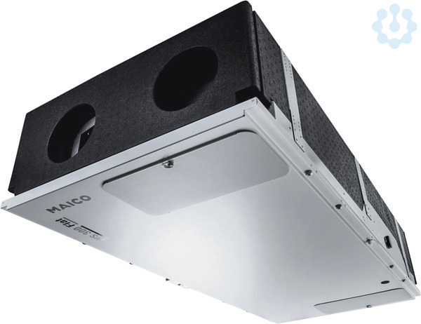 Komfort-Bypass-Ausführung links: Zentralgerät mit zwei Enthalpiewärmetauschern, integriertem Bypass und Vorheizregister. Somit wird die Raumluft bei hohen Außentemperaturen optimal gekühlt, ohne dass Zugerscheinungen auftreten und bei tiefen Außentemperaturen komfortabel vorgewärmt. Zu- und Abluft links (in Einbaulage Decke, Blick auf das Elektronikfach). Kurzbeschreibung: Intelligentes Lüftungsgerät mit Wärme- und Feuchterückgewinnung zur kontrollierten Be- und Entlüftung mit einem Fördervolumen von 80 bis 300 m3/h. Vollkommene Trennung der Abluft- / Zuluftführung im gesamten Gerät. Dadurch wird unerwünschter Umluftbetrieb verhindert. Viren (z.B. Corona-Virus) und Bakterien werden somit nicht übertragen. Hygienezertifikat nach VDI 6022, Blatt 1 vorhanden. Kompakt und hocheffizient - Energieeffizienzklasse A. Schall- und energieoptimierte Ventilatoren in EC-Technologie. KfW-Förderfähigkeit und NRW-Förderung sind gegeben. Hoher Volumenstrom bei äußerst geringer Aufbauhöhe von 30 cm und leisem Betrieb. Montagemöglichkeiten: Flexibel an der Decke, Wand oder in der Dachschräge. Keine Druckschwankungsempfindlichkeit: Die integrierte /automatische Volumenstromkonstanz-Regelung sorgt für eine dauerhafte Einhaltung des eingestellten Volumenstromes unter sämtlichen Betriebsbedingungen (z.B. Filterverschmutzung, Luftventil-Einstellungen). Somit ergibt sich auch eine einfachere Inbetriebnahme / Luftmengen-Einmessung an den Ventilen. Es ist keine Einregulierung der Volumenströme notwendig. Verschiedene Betriebsarten: Aus, Manuell, Auto Sensor, ECO-Abluft, ECO-Zuluft. Raumluftsteuerung RLS 1 WR im Lieferumfang. ISO Coarse 80 % (G4) Filter in der Abluft und ISO ePM1 60 % (F7) Pollenfilter in der Außenluft. Das Lüftungsgerät ist mit zwei hochmodernen Enthalpie-Wärmetauschern mit Hygienezertifikat nach VDI 6022, Blatt 1 ausgestattet. Das WS 300 Flat ist via APP (air@home) und dem browserbasierten Webtool (www.air-home.de) mittels integrierter LAN-Schnittstelle ansteuerbar. Plug & Play: Einfache Inbetriebnahme durch kostenlose Inbetriebnahmesoftware und serienmäßigen USB-Anschluss für Inbetriebnahme, Steuerungs-Update sowie Service. Serienmäßig integrierter Kombisensor (Feuchte/Temperatur) in der Abluft ermöglicht einen bedarfsgeführten Lüftungsbetrieb sowie eine intelligente Entfeuchtungsstrategie (Überfeuchtungsschutz). Weiterhin zeichnet sich das Gerät durch eine an den wirklichen Bedarf angepasste Frostschutzstrategie aus. Das Wärmerückgewinnungsgerät verfügt über einen Multifunktionskontakt für die Ansteuerung von z.B. Sole-Erdwärmetauscher (ungeregelte Pumpe), Betriebs- und Störungsanzeige, Vorheiz- oder Nachheizregister, Außenklappen oder Kühlung. 2 Eingangskontakte (12 V und 230 V) sind vorhanden für z.B. sicherheitstechnische Abschaltungen. Diverse Ein-/ Ausgänge ermöglichen eine regelungstechnische Verbindung zu anderen haustechnischen Geräten z.B. Wärmepumpe. Integrierte MODBUS-Schnittstelle (TCP/IP und RTU) für Integration in die Gebäudeleittechnik. Das optionale Steckmodul K-SM ermöglicht die Integration in KNX-Gebäudesysteme. Das optionale Steckmodul E-SM ermöglicht die Integration in EnOcean-Systeme. Optionale Zusatzplatinen ZP 1 und ZP 2 für Erweiterungsfunktionen wie z.B. Druckkonstanz-Regelung der EC-Ventilatoren, Zonenklappe, Sole-Erdwärmetauscher (geregelte Pumpe), Filterdifferenzdruckmessung. Maximale Geräte-Flexibilität durch verschiedenste Ausstattungs-/ Anschlussmöglichkeiten. Moderne Geräte-Modultechnik ermöglicht eine hohe Benutzerfreundlichkeit für Service und Wartung. Gehäuse: Pulverbeschichtetes Stahlblechgehäuse, Farbe: Verkehrsweiß, ähnlich RAL 9016. Filterwechsel einfach ohne Werkzeug möglich. Dichtes, wärmebrückenfreies, und schallgedämmtes Innengehäuse aus temperaturbeständigem, schall- und wärmedämmendem EPP-Material. EPP-Gehäuse mit sehr guten hygienischen/nicht hygroskopische Eigenschaften. Geräteoberfläche und Geräte-Innengehäuse sind einfach zu reinigen. Filter: ISO Coarse 80 % (G4) Filter in der Abluft und ISO ePM1 60 % (F7) Pollenfilter in der Außenluft. Werkzeugloser Filterwechsel. Bedienung: Betriebsfertig mit Ein-/ Ausschalter. Bedienteil RLS 1 WR im Lieferumfang, 4 Luftstufen, Filterwechselanzeige, Störungsanzeige. Weitere Bedienteile können parallel angeschlossen werden. Mobile Bedienung mittels APP (air@home) oder browserbasiertem Webtool (www.air-home.de) über Smartphone, Laptop oder PC ermöglicht z.B. Liveberichterstellung, Nutzerverwaltung, Bedarfsgeführter Automatikbetrieb / Zeitgesteuerter Automatikbetrieb, Manueller Betrieb / AUS, ECO-Betrieb Zuluft oder ECO-Betrieb Abluft, Filterabfragen, Fehlermeldungen. Optionales Touchscreen-Bedienteil RLS T2 WS für die Einstellung von: 2 Automatikbetriebsarten (Auto Sensor / Auto Zeit), 4 manuellen Betriebsarten (ECO-Abluft / ECO-Zuluft / MANUELL / AUS), komplette Inbetriebnahme des WS 300 Flat möglich. Optionales Design-Bedienteil RLS G1 WS: EIN/AUS, 5 Stufen, Automatikbetrieb, ECO-Zuluft, ECO-Abluft, Filterwechsel- und Störungsanzeige, USB-Anschluss für Service/Inbetriebnahme - kostenlose MAICO-Inbetriebnahmesoftware. Netzwerkeinbindung über integrierte LAN-Schnittstelle. Smart-Home ready (z.B. Loxone über Modbus TCP/IP). Modbus TCP/IP und RTU serienmäßig integriert. Optionales KNX-Steckmodul K-SM für Einbindung in die Gebäudeleittechnik www.knx.org. Optionales EnOcean-Steckmodul E-SM für die Geräteintegration in die EnOcean-Welt www.enocean-allinace.org. Steuerung: Serienmäßige bedarfsgeführte Volumenstromregelung (maßgebender Feuchtewert). Stufenlose bedarfsgeführte Anpassung der Luftmengen. Integrierte Überfeuchtungsschutz-Funktion. 3 Temperatursensoren in der Außen-, Fort- und Zuluft. 1 Kombisensor (Temperatur und Feuchte) im Abluftstutzen. Bis zu 4 externe Sensoren verschiedener Typen (CO2, VOC, Feuchte) anschließbar. Multifunktionskontakt zur Ansteuerung von z.B. Sole-Erdwärmetauscher (ungerege