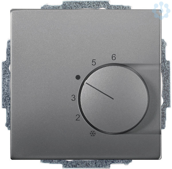 Raumtemperaturregler u.P., 230 V, einschl. Zentralscheibe, ohne Abdeckrahmen, Öffnerkontakt 10(4)A, Einstellbereich 5…30°C mit Bereichseinengung, Temperaturabsenkung, Berührungsschutzkappe, Farbe: edelstahlfarbig lackiert, passend in folgende Schalterprogramme: Busch-Jaeger future, future-linear, solo, axcent, carat, dynasty und pur edelstahl