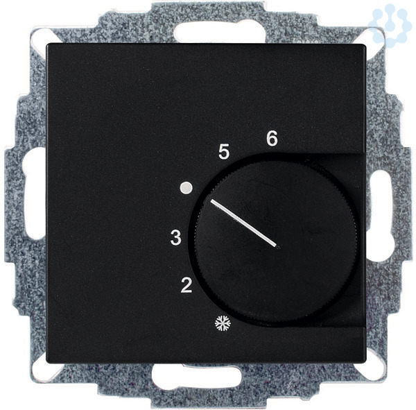 Raumtemperaturregler u.P., 230 V, einschl. Zentralscheibe 55x55mm, ohne Abdeckrahmen, Wechslerkontakt 10(4)A Heizen, 5(2)A Kühlen, Einstellbereich 5…30°C mit Bereichseinengung, Temperaturabsenkung, Berührungsschutzkappe, Farbe: schwarz/graphitschwarz matt (lackiert), passend in folgende Schalterporgramme: Gira System 55, Jung Serie A und AS, Merten Serie System M
