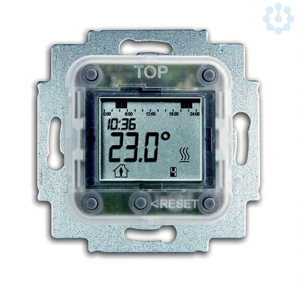 Mit Wechselkontakt und thermischer Rückführung. Einfache Einstellung über menü- und textgeführte Anzeige. 4 Schaltzeiten pro Tag für jeden Wochentag frei einstellbar. Mit Spreizbefestigung Automatische Sommer-/Winterzeit-Zeitumschaltung Gangreserve > 10 Stunden. Passend für Zentralscheibe 6435-xxx. Klasse des Temperaturreglers: 1 Beitrag zur Raumheizungsenergieeffizienz: 1,0%. Nur in Verbindung mit handelsüblichen UP-Gerätedosen nach DIN 49073, montieren oder Busch-Jaeger Art.-Nr. 3040 UP-Dose Mauerwerk, 3050 UP-Dose Hohlwand oder 3060 UP-Dose Beton) Für den Regler werden Stellventile in der Ausführung "stromlos geschlossen oder geöffnet" benötigt. Z.B. Artikel Nr. 6164/10-102. Schalttemperaturdifferenz ± 0,5 K.
