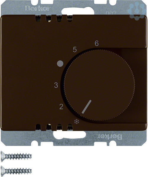 Temperaturregler mit Wechsler und Zentralstück Arsys braun, glänzend. Raumtemperaturregler mit Wechsler und Zentralstück mit Aufdruck, Regulierknopf mit Temperaturbereichsbegrenzung. Für Heiz- oder Kühlbetrieb, z.B. für Stellantriebe stromlos geschlossen, mit thermischer Rückführung, ohne Spreizkrallen, mit Steckklemmen, Neutralleiter erforderlich, wird die eingestellte Temperatur erreicht, wechselt der Kontakt. Unterputz-Installation, Flächen-/Designprogramm. Material: Kunststoff, halogenfrei.