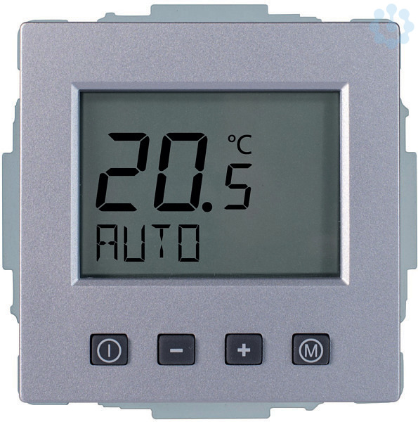 Raumtemperaturregler u.P. Komfort, zur Regelung der Raumtemperatur und gleichzeitiger Begrenzung der Fußbodentemperatur, mit Zeitschaltuhr, großes, beleuchtetes Display, einschl. Zentralscheibe, ohne Abdeckrahmen, einfache Bedienung, Ist- und Solltemperaturanzeige, 10(4)A, 230V, einschl. Fühler (NTC, 33kOhm bei 25°C) mit 4,00 m Leitung, ohne Fühlerhülse, Umstellmöglichkeit auf Heizen/Kühlen-Funktion und auf Schließerkontakt, selbstlernendes Regelverhalten, Farbe: alu glänzend (lackiert), passend in folgende Schalterprogramme: Busch-Jaeger future, future-linear, solo, axcent, carat, dynasty und pur edelstahl