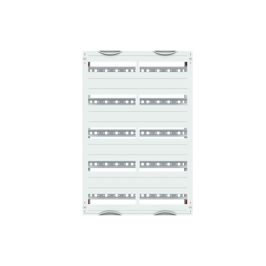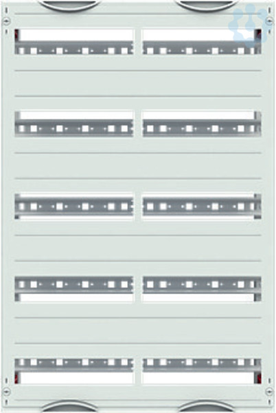 Innenausbau Modul, CombiLine, montiert im Schrank eingebaut, für DIN Reiheneinbaugeräte, Rasteinheit 5 RE = 750 mm, Feldbreite 2 = 500 mm, 120 Platzeinheiten, Reihenabstand: 150, Ausbau mit Hutprofilschiene 35 x 15 mm mit Lochung für Drahthalter, für Einbaugeräte nach DIN 43880, Abdeckungen aus Kunststoff, 90 Grad Druck-Drehverschluss, RAL 7035, Ausführung der Abdeckung: mit Ausschnitt, einsetzbar ab einer Schranktiefe von 120 mm, EDF oder WR Montagegerüst muss separat bestellt werden
