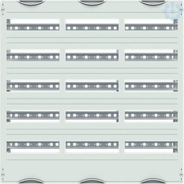 Innenausbau Modul, CombiLine, montiert im Schrank eingebaut, für DIN Reiheneinbaugeräte, Rasteinheit 5 RE = 750 mm, Feldbreite 3 = 750 mm, 180 Platzeinheiten, Reihenabstand: 125, Ausbau mit Hutprofilschiene 35 x 15 mm mit Lochung für Drahthalter, Hutschiene ab 3-feldbreit mit zusätzlicher Stabilisierungsschiene, für Einbaugeräte nach DIN 43880, Abdeckungen aus Kunststoff, 90 Grad Druck-Drehverschluss, RAL 7035, Ausführung der Abdeckung: mit Ausschnitt, einsetzbar ab einer Schranktiefe von 120 mm, EDF oder WR Montagegerüst muss separat bestellt werden