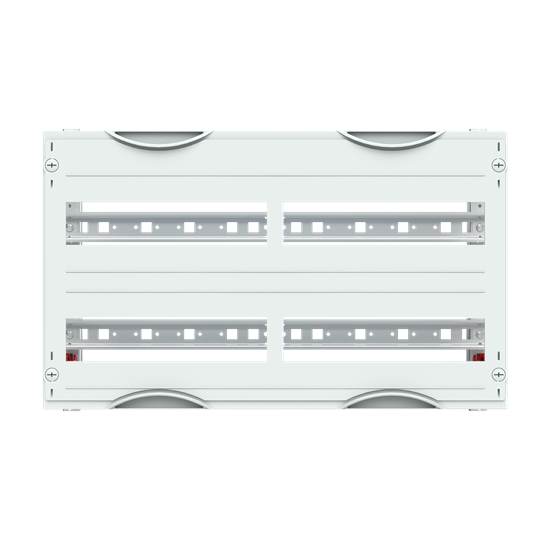 Innenausbau Modul, CombiLine, montiert im Schrank eingebaut, für DIN Reiheneinbaugeräte, Rasteinheit 2 RE = 300 mm, Feldbreite 2 = 500 mm, 48 Platzeinheiten, Reihenabstand: 125, Ausbau mit Hutprofilschiene 35 x 15 mm mit Lochung für Drahthalter, für Einbaugeräte nach DIN 43880, Abdeckungen aus Kunststoff, 90 Grad Druck-Drehverschluss, RAL 7035, Ausführung der Abdeckung: mit Ausschnitt, einsetzbar ab einer Schranktiefe von 120 mm, EDF oder WR Montagegerüst muss separat bestellt werden