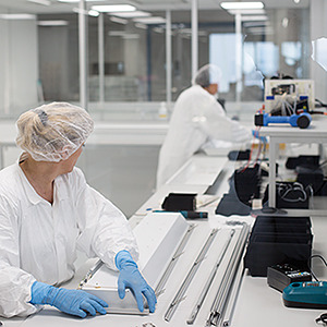 Stahlblechgehäuse geeignet für Decken mit sichtbaren T-Schienen, verdeckt symmetrischen Schienenkonstruktionen und ausgeschnittene Decken, Schutzart bezieht sich auf sichtbare Leuchtenfläche, geeignet für den Einsatz in Reinräume und Reinraumbereiche nach DIN 14644-1, gefertigt nach IPA Vorgaben, sowie den Richtlinien der Qualitätssicherung GMP (Good Manufacturing Practice), Lichtverteilung direkt strahlend mittels diffus strahlendem, satinierten Diffusor aus Acrylglas mit Aluminiumrahmen natur eloxiert, Lichtfarbe neutralweiß (840) mit sehr guter Farbkonsistenz und hoher Farbwiedergabe Ra>80, Elektrischer Anschluss und Anschluss der Steuerleitung über 5-polige Anschlussklemme in Steckkontakt-Technik.