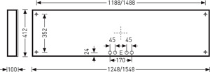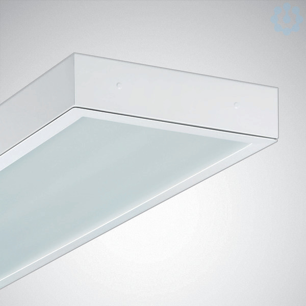 Reinraum-Anbauleuchte. mit integriertem LED-System. Leuchte mit begrenzter Oberflächentemperatur gemäß DIN EN 60598-2-24 für den Einsatz in feuergefährdeten Betriebsstätten geeignet (D-Kennung). Anbauleuchte für die Deckenmontage. In Verbindung mit einem Einbaurahmen (optionales Zubehör) kann die auch als Einbauleuchte in gesägten Deckenöffnungen zu verwenden. Mit symmetrisch strahlender Lichtstärkeverteilung. Blendungsbewertung nach UGR-Einstufung (EN 12464-1) < 22. Leuchtenabdeckung aus hochwiderstandsfähigem Verbund-Sicherheitsglas, satiniert. Oberfläche zur Vermeidung unkontrollierter Reflexionen bei Einsatz von Lasertechnik fein strukturiert. Bemessungslichtstrom 12400 lm, Bemessungsleistung 125,00 W, Leuchten-Lichtausbeute 99 lm/W. Lichtfarbe neutralweiß, ähnlichste Farbtemperatur (CCT) 4000 K, allgemeiner Farbwiedergabeindex (CRI) Ra > 90. Mittlere Bemessungslebensdauer L80(tq 25 °C) = 70.000 h, mittlere Bemessungslebensdauer L85(tq 25 °C) = 50.000 h. Leuchtenkörper aus Stahlblech. Oberfläche weiß beschichtet (RAL 9016). Maße (L x B): 1548 mm x 412 mm, Leuchtenhöhe 100 mm. Innen liegende Schleifkontaktverschlüsse beziehen den Rahmen selbsttätig in die elektrische Schutzmaßnahme ein. Zulässige Umgebungstemperatur (ta): -20 °C - +25 °C. Schutzklasse (EN 61140): I, Schutzart (DIN EN 60529): IP65, Stoßfestigkeitsgrad nach IEC 62262: IK08, Prüftemperatur Glühdrahttest gemäß IEC 60695-2-11: 650 °C. Anschlussfertig verdrahtet, 2 Kabelverschraubungen beiliegend. Mit elektronischem Betriebsgerät, digital dimmbar (DALI). Die Leuchte ist Monitoring ready (MOR), liefert Leuchtendaten zur Überwachung oder vorausschauenden Wartung und ist damit kompatibel zu den TRILUX Digital Services (Energy Monitoring und Light Monitoring). Das Produkt erfüllt die grundlegenden Anforderungen der anwendbaren EU-Richtlinien und des Produktsicherheitsgesetzes und trägt die CE-Kennzeichnung.