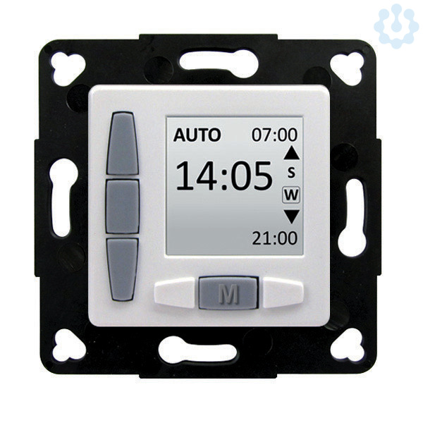 Elektronisch digitale Zeitschaltuhr mit LCD Display 1,7" im 50 x 50 mm Maß zum integrieren in fast alle gängigen Schalterprogramme, Farbe ultraweiß, zur Programmierung von Tagesprogramm mit je 1 Auf- und Abschaltzeit, manueller Schaltmöglichkeit mit Stoppfunktion und Tippbetrieb, Urlaubsschaltung mit zufälliger Verschiebung der Schaltzeiten um 1-30min., automatische Umstellung Winter-/Sommerzeit, Motorlaufzeit 150 sek. fest eingestellt, Gangreserve 72 Stunden, Schaltleistung 3 A / 230 V/50 Hz, inkl. Abdeckrahmen IP40