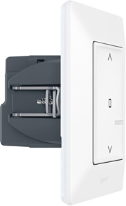 Funk-Rollladenschalter für "Valena Life with Netatmo" - Zur Steuerung von 230 V~ Rollläden (Auf – Stopp – Ab) mit elektronischen oder mechanischen Endschaltern (nicht kompatibel mit funkgesteuerten Motoren). Die Ansteuerung erfolgt mittels Funk-Wandsender Rollladen. Die Montage erfolgt mittels Schrauben oder Spreizkrallen in eine 1-fach Standard-Unterputz- oder Hohlwanddose mit Tiefe 40 mm. Auslieferung inkl. Wippe und Abdeckrahmen.Ausführung: Valena Life in der Farbe Ultraweiss