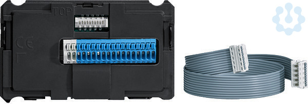 Ruftaster Anschlussmodul EB mit Halterung, max. 16 T./Modul, 16 Mod. kaskadierb. Ruftaster Anschlussmodul EB mit selbstklebender Halterung für Sprechanlagen/Intercom nach DIN EN 50486 zum Anschluss von max. 16 Ruftastern und max. 16 Tastenexpander, kaskadierbar für bis zu 256 Ruftaster. Einfacher Anschluss der Ruftaster mit einer Ader und einem gemeinsamen Fußkontakt, keine Matrix-Verschaltung nötig. Mit steckbarem Flachbandkabel 335 mm zum Kommunikationsmodul (Audio, Audio/Video), Adresseinstellung am Kommunikationsmodul.