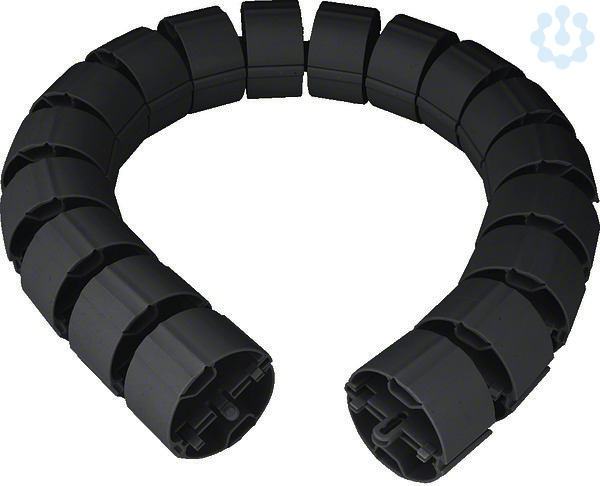 Rundkette starr/flexibel 2 Kammern aus PP d=70mm ausgezogene L=1m tiefschwarz.Rundkette für die universelle Leitungsführung, flexibel und starr einsetzbar, zwei Kammern, Leitungen einlegbar, beliebige Längenanpassung, Lieferlänge ausgezogen: 1 m.