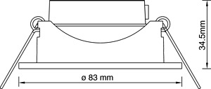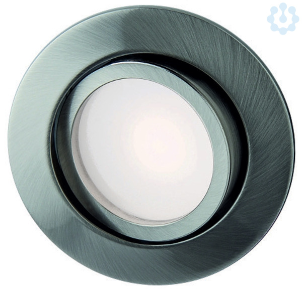 für die Innenanwendung, IP40 Gehäuse: Aluminium-Druckguss (Schutzscheibe Kunststoff, matt) Gehäusefarbe: Eisen-gebürstet schwenkbar Ausstrahlwinkel: 95° Leistung: 5,5 W Lichtfarbe: 2700 K Lichtstrom: 400 lm CRI: >80 Lebensdauer L70: >= 50.000 h Eingangsspannung: 230 V AC, 50 / 60 Hz Schutzklasse I Einbautiefe: 45 mm Deckenausschnitt: 68 mm Außendurchmesser: 83 mm nicht dimmbar
