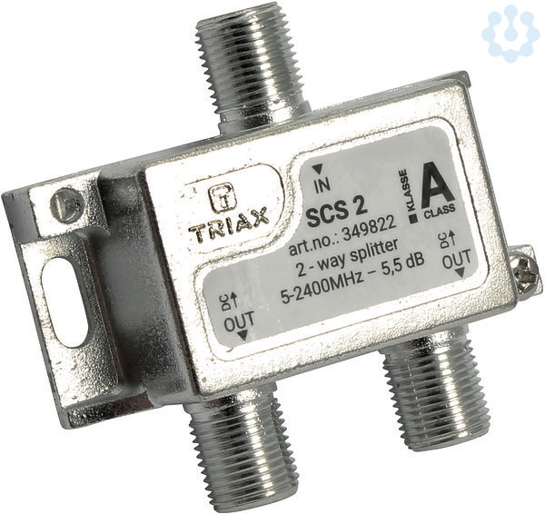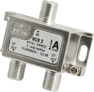 2-fach-Verteiler, ideal für den Einsatz in SAT-ZF- und DVB-T Verteilanlagen, Frequenzbereich 5 - 2400 MHz, DC/AC-Durchlass von allen Ausgängen, entkoppelt über Dioden zum Eingang, A-Klasse Schirmung gegen Einstrahlungen wie LTE Telefonie, hochwertiges Zink-Druckgussgehäuse, zinnbeschichtet mit verlöteter Grundplatte, klemmen für Potentialausgleich