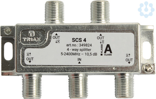 4-fach-Verteiler, ideal für den Einsatz in SAT-ZF- und DVB-T Verteilanlagen, Frequenzbereich 5 - 2400 MHz, DC/AC-Durchlass von allen Ausgängen, entkoppelt über Dioden zum Eingang, A-Klasse Schirmung gegen Einstrahlungen wie LTE Telefonie, hochwertiges Zink-Druckgussgehäuse, zinnbeschichtet mit verlöteter Grundplatte, klemmen für Potentialausgleich