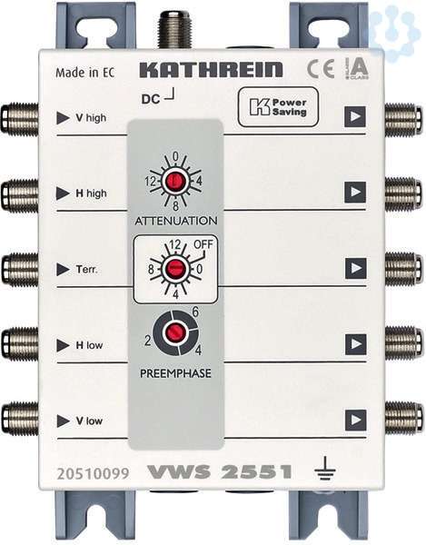 SAT-Verteilnetzverstaerker, 47-862 u. 4 x 950-2150 MHz, 5 Eingaenge 5 Ausgaenge, Fernspeisung durch Endmultischalter oder externen DC-Anschluss, KPS,