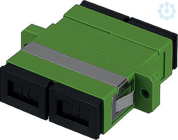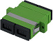 SC-D Kupplung, OS2 APC, grün; - Kunststoffgehäuse zur Schraub- oder Einschnappmontage (Metall-Clip); - geschlitzte Keramikhülse; - mit Staubschutzkappen; - entsprechend nachfolgender Normanforderungen:; - ISO 61754-4; - MM PC, Grade B oder SM (PC/APC), Grade B; - Lebensdauer > 1000 Steckzyklen