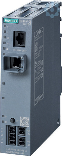 SCALANCE M812-1 ADSL-Router, für die drahtgebundene IP-Kommunikation von Ethernet- basierten Automatisierungs- geräten über Internet Service Provider, VPN, Firewall, NAT, 1x Ethernet RJ45 Port, 1xDigitaleing., 1xDigitalausg., ADSL2+, Annex A. SCALANCEM812-1 ADSL2+ (Annex A)VPN und Firewall, Übertragungsrate 10 Mbit/s, 100 Mbit/s, 1x Ethernet RJ45 Port, ADSL2+, NAT, 1xDigitaleingang, 1xDigitalausgang, Annex A, Klemmleiste, Schutzart IP20.DSL-Router für die drahtgebundene IP-Kommunikation von Ethernet-basierten Subnetzen und Automatisierungsgeräten.Für die kostengünstige und sichere Anbindung von Ethernet-basierten Subnetzen und Automatisierungsgeräten an kabelgebundene Telefon- bzw. DSL-Netze. Geeigneter Einsatz im industriellen und industrienahen Bereich.Hohe Sicherheitsstandards durch Firewall (stateful packet inspection) und VPN-Verbindungen (IP-Sec) als integraler Bestandteil des Industrial Security Konzepts. Die Geräte unterstützen ADSL2+ (Asynchronous Digital Subscriber Line) und ermöglichen damit hohe Übertragungsraten im Up- und Downlink. Reduzierung von Reise- und Personalkosten durch die mögliche Fernprogrammierung und Ferndiagnose über drahtgebundene Telefon- bzw. DSL-Netze. Das Gerät bietet eine leichte Verwendung bei bestehender Infrastruktur. Breiter Einsatzbereich durch hohe Bandbreite, Performance und Geschwindigkeit. Weltweit einsetzbar.Zubehör wie Wechselmedium C-Plug und Key-Plug, Desktop-Standfuß zur Tischmontage, Fast Connect Steckverbinder, verschiedene Leitungen sowie Einbaurahmen runden das Produkt perfekt ab.