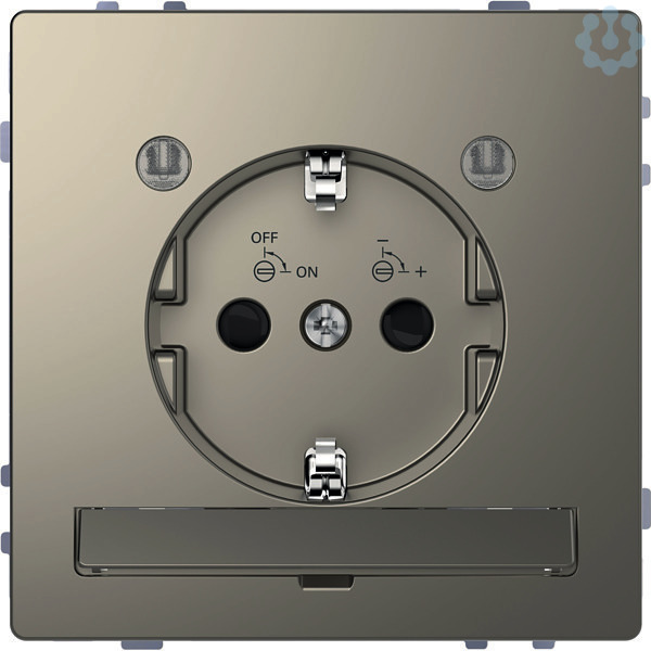 Integrierter erhöhter Berührungsschutz gemäß VDE 0620 Teil 1. Warm-weiße LEDs erhellen einen Bereich unterhalb der Steckdose. Der beleuchtete Bereich kann durch Verstellen des Lichtaustritts optimal angepasst werden. Bei Dunkelheit schaltet sich die LED-Beleuchtung automatisch ein und bei ausreichender Umgebungshelligkeit wieder aus. Die Helligkeitsschwelle kann komfortabel von vorne und ohne Demontage an der Zentralplatte eingestellt werden. Weiterhin lässt sich an der Zentralplatte die Automatik abschalten, so dass die Beleuchtung, z. B. während eines Urlaubs, ausgeschaltet bleibt. Eigenschaften-Mit integriertem QuickFlex-Modul. Schnellgewindeschrauben für die Krallenbefestigung. Versenkte Krallen mit Rückstellfeder. Hochglanzverzinkter Tragring isoliert zur Kralle. Mit Krallen- und Schraubbefestigung. Mit Steckklemmen. LED-Leistungsaufnahme: 1,7VA (0,35W Wirkleistung). LED-Lebensdauer: > 50000 h. Material Thermoplast lackiert. Farbe Nickelmetallic.