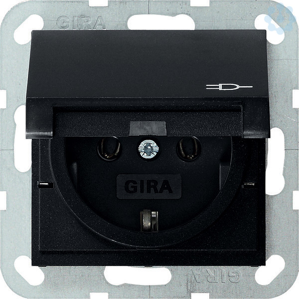 SCHUKO-Steckdose 16 A 250 V~ mit Klappdeckel System 55 Schwarz matt Hinweise : Abdeckrahmen (1- bis 5fach) aus den Schalterprogrammen Standard 55 und Gira E2 in Verbindung mit dem Dichtungsset auch für die Montage von Unterputz-SCHUKO-Steckdosen mit Klappdeckel wassergeschützt IP44 geeignet.