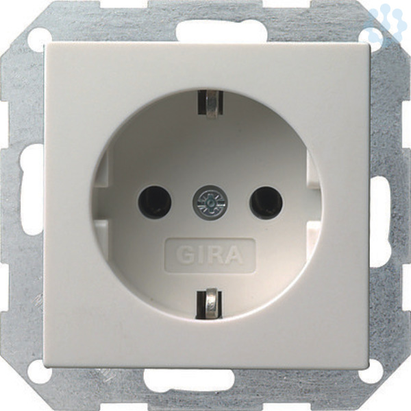 SCHUKO-Steckdose 16 A 250 V~ Reinweiß seidenmatt Schraubklemmen - Geerdeter Tragring. Mit erhöhtem Anpressdruck des Erdungsbügels geprüft nach T.N.O.