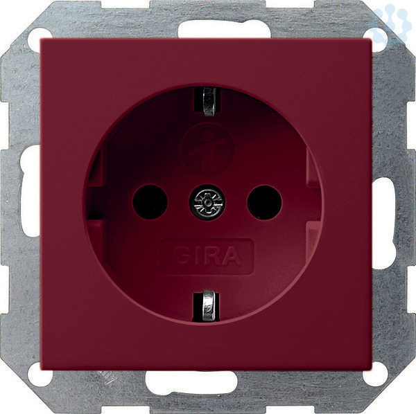 SCHUKO-Steckdose 16 A 250 V~ mit integriertem erhöhten Berührungsschutz (Shutter) und Symbol mit roter Abdeckung und Schraubklemmen Rot glänzend Hinweise : Erhöhter Berührungsschutz gemäß DIN VDE 0620-1.