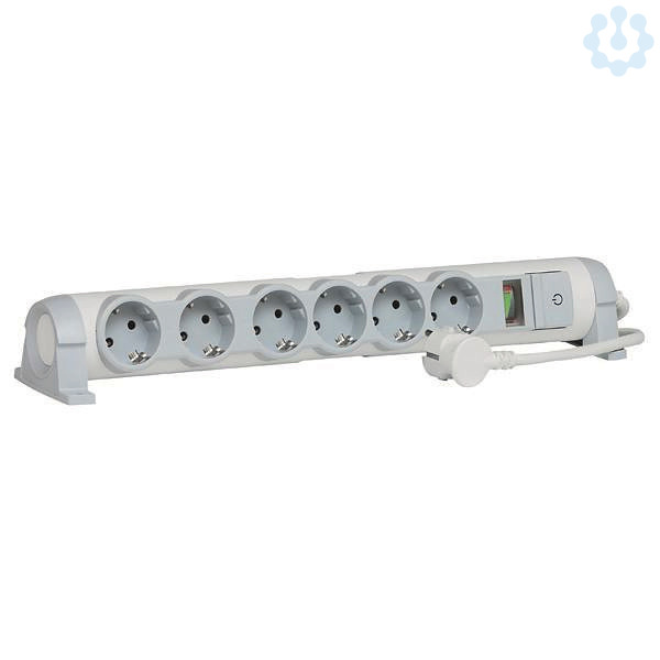 SCHUKO-Steckdosenl. 6-f. E-anzeige Zul.1,5m K-schalter Sich. weiss-gr.