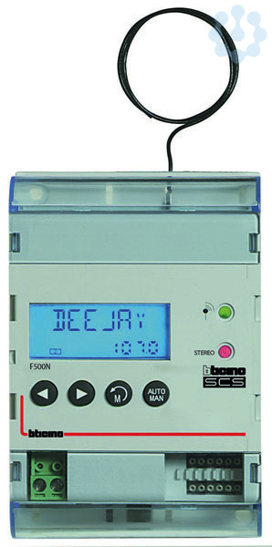 Reiheneinbau RDS-Stereo-Tuner mit 15 Stationsspeichern, frontseitiges Display, Antennenanschluss über F-Connector oder Wurfantenne, 4 TE DIN