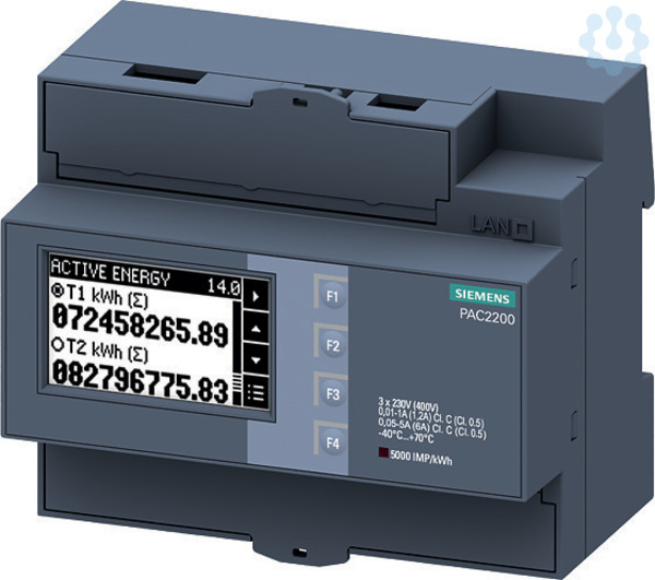 SENTRON, Messgerät, 7KM PAC2200, LCD, L-L: 400 V, L-N: 230 V, 5 A, Hutschienengerät, 3-phasig, Modbus RTU, Schein- / Wirk- / Blindenergie, eigenversorgt, Schraubanschluss Energiezähler SENTRON 7KM PAC2200 zur Messung des Energieverbrauchs in ein- und dreiphasigen Netzen, z. B. in Industrieanlagen, Zweckbauten, Büros und Wohnungen in Mehrfamilienhäusern.Die Energiemessgeräte 7KM PAC 2200 mit erweitertem Funktionsumfang erfassen präzise, reproduzierbar und zuverlässig die Energiewerte für die Einspeisung, elektrische Abgänge oder einzelne Verbraucher über Wandler- oder Direktmessung bis zu 65 A. Sie liefern nicht nur umfassende Informationen über Ihre Elektroinstallation und Energieverteilung sondern auch wichtige Messwerte zur Beurteilung des Anlagenzustands. Zur weiteren Verarbeitung der Messdaten lassen sich die Geräte dank ihrer vielfältigen Kommunikationsmöglichkeiten sehr einfach in übergeordnete Automatisierungs- und Energiemanagementsysteme einbinden über Modbus TCP, PROFINET, Modbus RTU und M-Bus.Die 7KM PAC Messgeräte gibt es in verschiedenen Varianten, passend zum Umfang ihrer Anforderung.SENTRON PAC - Spezialisten in der Messwerterfassung.