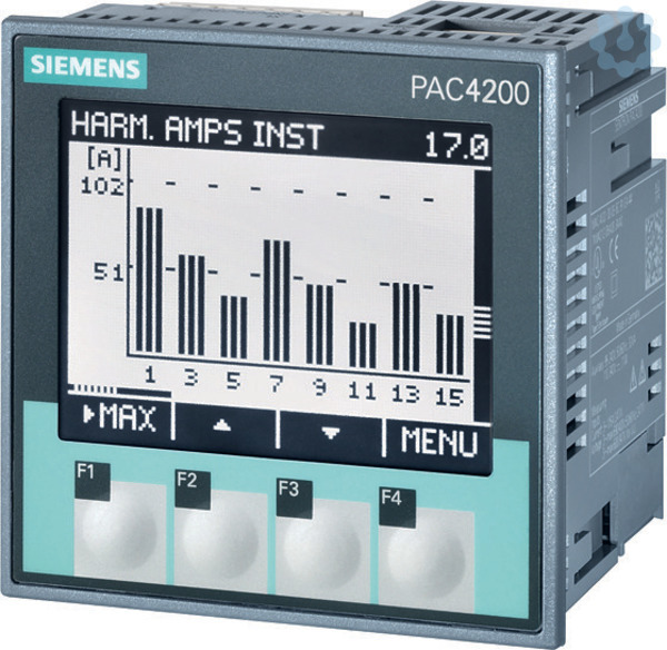 SENTRON, Messgerät, 7KM PAC4200, LCD, L-L: 500 V, L-N: 289 V, 5 A, 3-phasig, Modbus TCP, optional Modbus RTU / PROFINET / PROFIBUS / DI/DO, Schein- / Wirk- / Blindenergie / cos phi, Oberschwingungen: 2. - 64., THD, Klasse 0,2 gem. IEC61557-12 bzw. Klasse 0,2S gem. IEC62053-22, Kleinspannungsnetzteil, DC, Schraubanschluss Messgerät für Netzqualitätsmessung SENTRON 7KM PAC4200 für die präzise Erfassung aller wichtigen elektrischen Messgrößen in Energieverteilungen zur Beurteilung der Anlagenzustände und der Netzqualität in der Prozess- und Fertigungsindustrie, aber auch für kritische Infrastrukturen wie Krankenhäuser und Rechenzentren.Das Netzanalyse-Messgerät 7KM PAC4200 erfasst präzise, reproduzierbar und zuverlässig alle wichtigen elektrischen Kenngrößen für die Einspeisung, elektrische Abgänge oder einzelne Verbraucher. Es liefert nicht nur umfassende Informationen über Ihre Elektroinstallation und Energieverteilung sondern auch wichtige Messwerte zur Beurteilung des Anlagenzustands und der Netzqualität. Zur weiteren Verarbeitung der Messdaten lassen sich die Geräte dank ihrer vielfältigen Kommunikationsmöglichkeiten sehr einfach in übergeordnete Automatisierungs- und Energiemanagementsysteme einbinden über Modbus TCP, PROFINET, PROFIBUS und Modbus RTU. Mit zusätzlichen Modulen lassen sich weitere digitale Ein- und Ausgänge, analoge Eingänge, N-Leiter-Direktmessung, Differenzstrommessung oder RS485-Gateway-Funktionalität realisieren.Die 7KM PAC Messgeräte gibt es in verschiedenen Varianten, passend zum Umfang ihrer Anforderung.SENTRON PAC - Spezialisten in der Messwerterfassung.