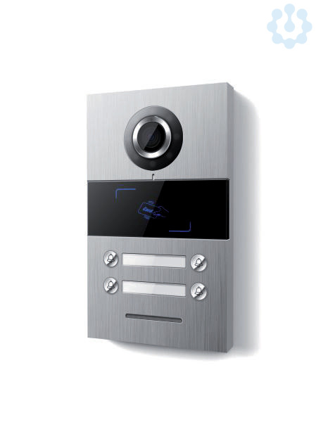 Video-Türstation, Vandalensicher, unter Putz, Mikrofon- und Lautsprechereinstellung, Kamera mit Erfassungsbereich 90 Grad, Erfassungswinkel manuell verstellbar, LED-Beleuchtung, 4 Klingeltaster mit Namensschild, Anschlussklemmen für Busleitung, potentialfreier Türöffnerkontakt ( auch mit zusätzlicher Chipkarte aktivierbar ), Anschlussmöglichkeit einer externen Türöffnertaste, Sabotagekontakt, Abmessungen 120 x 194 x 44,7 mm