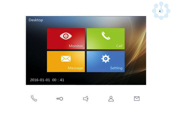 Touch-Screen-Monitor, Farbmonitor 7 ´´, Wandhalterung, Freisprechfunktion, Mikrofon, Lautsprecher, Sprech-, Türöffner- und Intercomtaste, für Parallelbetrieb geeignet, Anschlussmöglichkeit eines Etagentasters, Einstellmöglichkeit der Ruflautstärke, unterschiedlicher Klingeltöne sowie Helligkeit und Kontrast, Rufunterscheidung Ruf Intern, Türstation oder Etagentaster, Bildaufnahme mit automatischem Screenshot, SD-Kartenanschluss 2-32 GB für Videoaufnahmen, 4 Monitore parallel je Klingeltaste möglich ( ohne weitere Zusatzgeräte ), Potentialfreie Klemmen für den Anschluss eines externen Läutewerkes, Spannungsversorgung 30 V DC, Farbe: weiß, Abmessungen: 220 x 140 x 24 mm