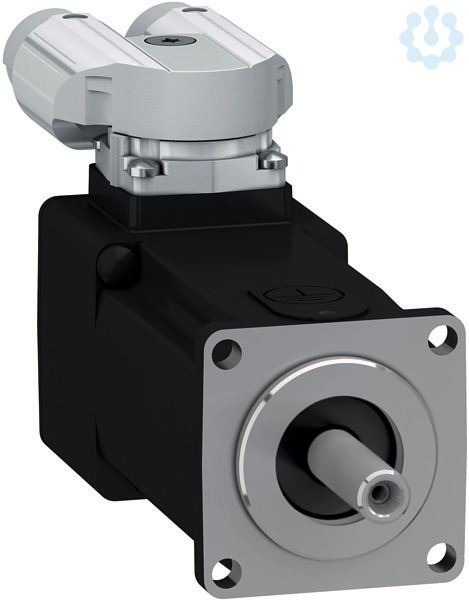 Lexium SH3 Servomotor. Diese SH3-Reihe an AC-Servomotoren weist ein geringes Rotorträgheitmoment auf, das eine hohe Beschleunigungsfähigkeit für dynamische Anwendung ermöglicht. Dank der Wicklungstechnologie ergibt sich eine höhere Leistungsdichte in kompakter Ausführung. Dieser Servo hat ein nominelles Dauerstillstandsmoment von 0,39 Nm und erreicht ein Spitzendrehmoment von 1,50 Nm. Seine Nenndrehzahl beträgt in Abhängigkeit der Versorgungsspannung bis zu 9000 U/min. Es ergibt sich eine spannungsabhängige Nennleistung bis zu 292 W. Der eingebaute Encoder ist als Singelturn mit 16 Perioden/Umdrehung (16x1024) als SinCos Hiperface ausgeführt. Der elektrische Anschluss erfolgt über Steckverbinder 2x Y-TEC, um 90° gewinkelt und drehbar. Zur Befestigung beträgt der Motorflansch 40 mm. Die Antriebswelle hat einen Durchmesser von 8 mm. Das Wellenende ist glatt und entspricht der Schutzart IP54 ausgeführt. Das Motorgehäuse entspricht der Schutzart IP65. Es ist keine Haltebremse vorhanden. Für den Betrieb des Synchronmotors empfehlen sich die Servoverstärker der Lexium-Reihe Lexium 52 & Lexium 62.