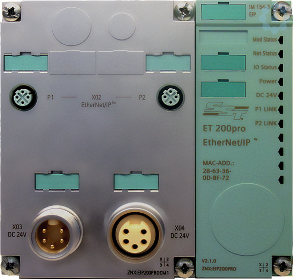 SIMATIC DP, Anschlussmodul für Ethernet/IP Kopfbaugruppe ET 200 PRO, M12/7/8, 2x M12 und 2x 7/8 SIMATIC ET 200pro ist ein modulares, robustes und vielseitiges Peripheriesystem in Schutzart IP65/67, das sich durch sein umfassendes Modulspektrum auszeichnet. Siemens bietet Ihnen somit eine platzsparende und multifunktionale Anwendungsmöglichkeit, die dank des modularen Aufbaus direkt an der Maschine installiert werden kann und keinen Schaltschrank benötigt. Sie können flexibel und schnell auf verschiedene Automatisierungsanforderungen reagieren, da das Peripheriesystem eine umfangreiche und innovative Bandbreite an Modulen enthält. Neben dem vielseitigen Modulspektrum ist das System aufgrund seines Aufbaus platzsparend und einfach zu montieren. Darüber hinaus können Sie die Stillstandzeiten Ihrer Anlage auf ein Minimum beschränken, da das SIMATIC ET 200pro durch seine High-Feature Module umfangreiche und exakte Diagnosemöglichkeiten liefert. Hot Swapping erlaubt Ihnen im Fehlerfall den Austausch der Elektronikmodule, ohne dass die Anlage abgeschaltet werden muss. Während Sie die Module wechseln, bleibt die Verdrahtung bestehen und die restlichen Anlagenteile laufen weiter. Siemens bietet Ihnen eine hochwertige und flexibel einsetzbare Komplettlösung, die aufgrund ihrer robusten Ausführung bei erhöhten mechanischen Belastungen eingesetzt werden kann. Stetiges Qualitätsmanagement trägt dazu bei, dass die ET 200 Produkte neue Marktstandards etablieren und Siemens zu einem zuverlässigen Partner machen. Das System bietet ein sehr breites Portfolio an Modulen. Neben diversen digitalen sowie analogen Ein-und Ausgangsmodulen in unterschiedlichsten Ausprägungsstufen, stehen auch eine Reihe von fehlersicheren Modulen für den Einsatz bis SIL 3 / PLe zur Verfügung. Speziell zur Motoransteuerung bietet das ET 200pro System integrierte Lösungen in Form von Motorstartern und Frequenzumrichtern, welche ebenfalls als fehlersichere Varianten verfügbar sind. Ein IO-Link Master und ein Modul zum Anschluss von RFID-Komponenten Geräten via der RS 232 / 422 Schnittstelle runden das Portfolio ab.