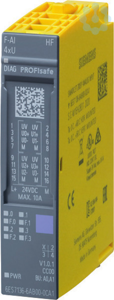 SIMATIC DP, Elektronikmodul ET 200SP, F-AI 4xU 0..10V HF, fehlersichere Analogeingänge, bis PL E (ISO 13849), bis SIL 3 (IEC 61508) Mit SIMATIC ET 200SP bietet Siemens Ihnen ein multifunktionales und dezentrales Peripheriesystem, das aufgrund seiner platzsparenden Bauweise ganz einfach in Betrieb genommen werden kann. Es ist für die Schutzart IP20 zugelassen und für den Einbau in einem kompakten Schaltkasten konzipiert. Das System gewährleistet Ihnen maximale Flexibilität, da Sie die Module aufgrund des Multi Hot Swapping jederzeit schnell und einfach tauschen können. Darüber hinaus bietet Ihnen das SIMATIC ET 200SP ein breites Spektrum an unterschiedlichen sowie schnellen Kommunikationswegen. Aufgrund der Integration des MultiFeldbus Interfacemoduls IM155-6MF sind Sie jederzeit flexibel und können das für Ihre Applikation optimale Protokoll verwenden, da durch diese Funktion mehrere Ethernet Protokolle unterstützt werden. Montage und Service werden durch ein einheitliches Kennzeichnungssystem, das auf Referenzkennzeichnungsschildern und Anschlussbelegungen mit Farbkodierung basiert, vereinfacht. Siemens garantiert Ihnen durch die Einbindung der innovativen und zugleich langlebigen Automatisierungsprodukte Zukunftssicherheit, denn als Branchenexperten setzen sie heute schon auf die Technologien von Morgen und definieren somit die Marktstandards neu. Durchgängige Datenverfügbarkeit, flexible Anwendungsfälle sowie vielseitige Integrationsmöglichkeiten sorgen für die optimale Performance der ET 200 Produkte. Die skalierbare und kostenoptimierte Konfiguration einer ET 200SP - Station wird durch das umfassende Spektrum von Signalbaugruppen gewährleistet. Es stehen neben digitalen und analogen Ein- und Ausgabebaugruppen jeweils auch fehlersichere Varianten für Anwendungen bis SIL 3 / PLe zur Verfügung. Dies gilt ebenso für die integrierten Motorstarter, welche für Motoren bis 5,5 kW geeignet sind. Energy Meter zur Messung und Analyse des Energieverbrauchs, IO-Link Master (V1.1.) sowie viele weitere Kommunikations- und Technologiemodule ermöglichen es dem System sich an jede Automatisierungsaufgabe anzupassen. Das verfügbare Zubehör fürET 200SP reicht von Farb- und Referenzkennzeichnungsschildern bis hin zu Beschriftungsstreifen für die einzelnen Module und sorgt für maximale Übersichtlichkeit im Schaltschrank.